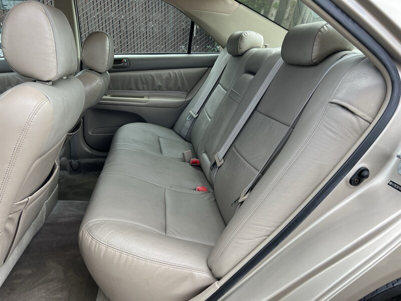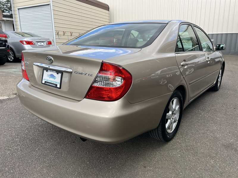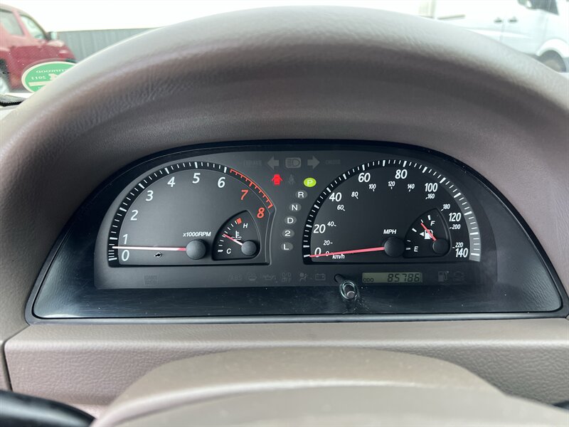 2004 Toyota Camry LE in Desert Sand Mica with a Taupe cloth interior. Powered by a 2.4L I4 producing 157 hp and 162 lb-ft, it returns about 21 MPG city / 30 MPG highway and has under 86,000 miles (averaging less than 4,000 miles per year). Factory equipment includes air conditioning, power windows, power door locks, power mirrors, remote keyless entry, cruise control, tilt steering, cloth seating with center armrest and a split-folding rear seat, AM/FM/CD stereo, intermittent wipers, rear window defogger, steel wheels with covers, and standard safety features such as front and front-seat side airbags and child seat anchors. Vehicle is in excellent overall condition.