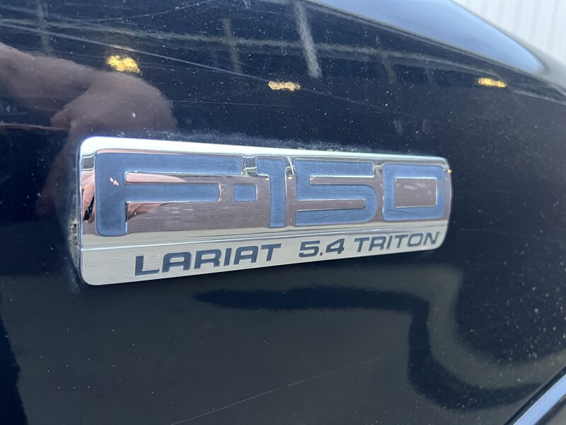 2006 Ford F-150 Lariat in Black Clearcoat with Black interior, powered by the Triton 5.4L V8 producing 300 hp and 365 lb-ft of torque. Factory Lariat equipment typically includes leather-trimmed seating with power-adjustable and heated front seats, premium audio with CD player and auxiliary input, steering-wheel audio and cruise controls, power windows and locks with remote keyless entry, automatic climate control, chrome exterior trim and alloy wheels, and convenient towing/prep features. Below 197,000 miles (averaging under 10,000 miles per year) and in excellent overall condition. EPA-rated at approximately 12 MPG city and 16 MPG highway.