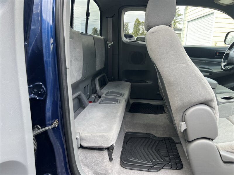 2006 Toyota Tacoma V6 4dr Access Cab in Indigo Ink Pearl with Graphite cloth interior. Powered by the factory 4.0L naturally aspirated DOHC 24-valve V6, the truck is factory-equipped with air conditioning, cloth seats, power windows and door locks, remote keyless entry, cruise control, tilt steering, AM/FM/CD stereo and fold-up rear seating/storage — with standard safety equipment such as front airbags and seatbelt pretensioners. Excellent overall condition, under 102,000 miles (averaging <5,000 miles/year) and rated about 14 MPG city / 18 MPG highway.