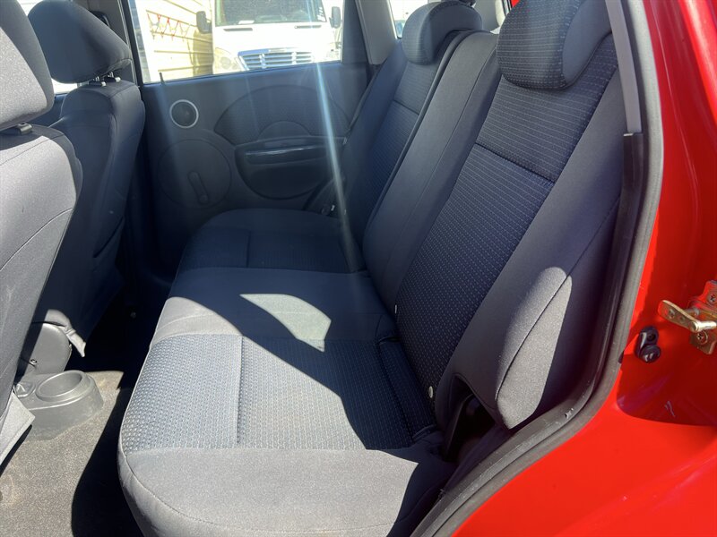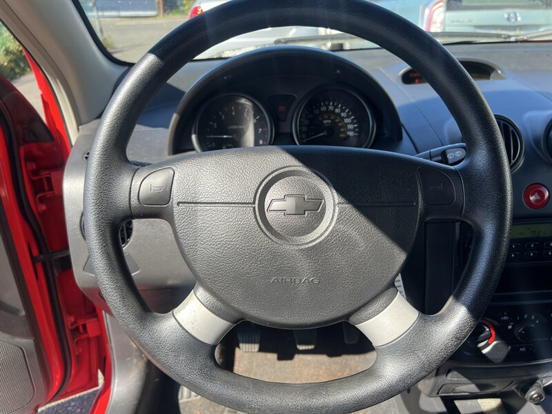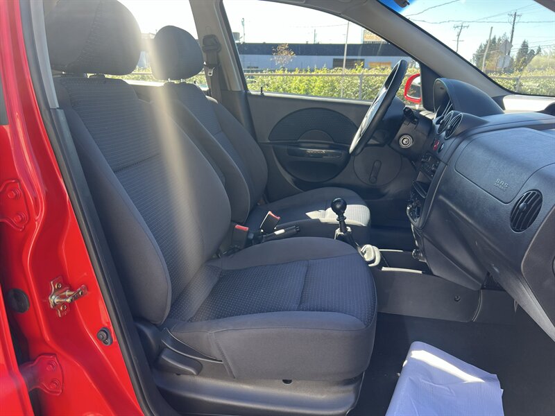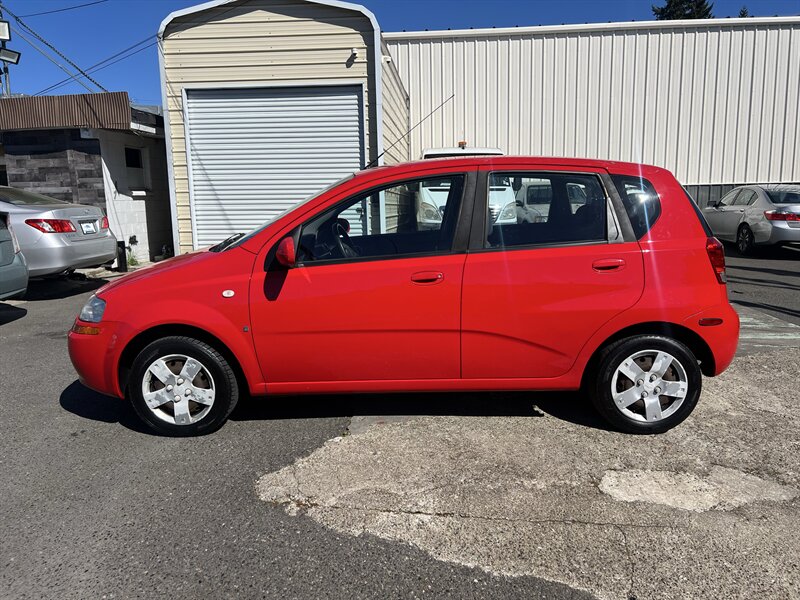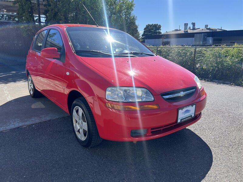 2007 Chevrolet Aveo5 5-door hatchback with a 1.6L I4 (103 hp, 107 lb-ft) and 5-speed manual transmission. Factory equipment includes air conditioning, AM/FM/CD stereo with auxiliary input, cloth Charcoal seating, split-folding rear seat for added cargo flexibility, tilt steering, power steering, halogen headlights, steel wheels with covers, front disc/rear drum brakes, dual front airbags, side-impact door beams and LATCH anchors for child seats. Finished in Sport Red exterior with Charcoal interior, this Aveo5 has below 119,000 miles (averaging under 6,000 miles/year), returns about 23 MPG city / 33 MPG highway, and is in excellent overall condition.