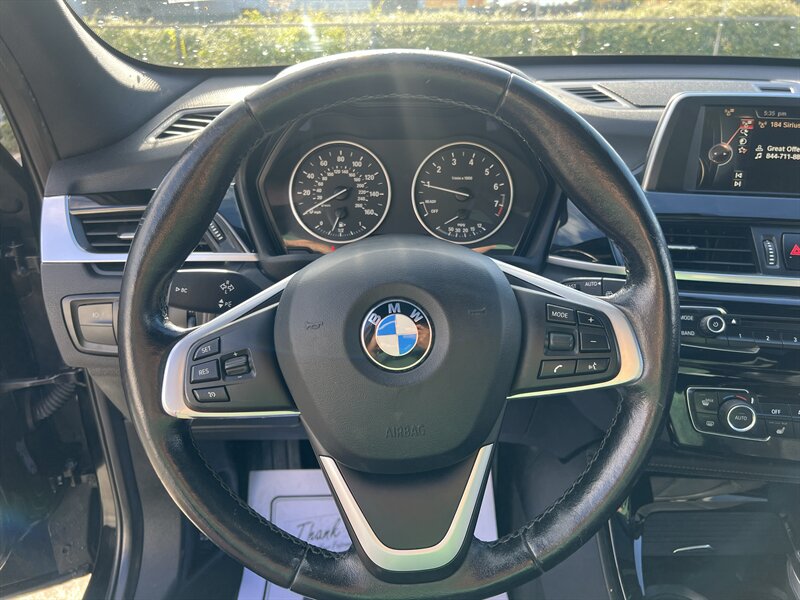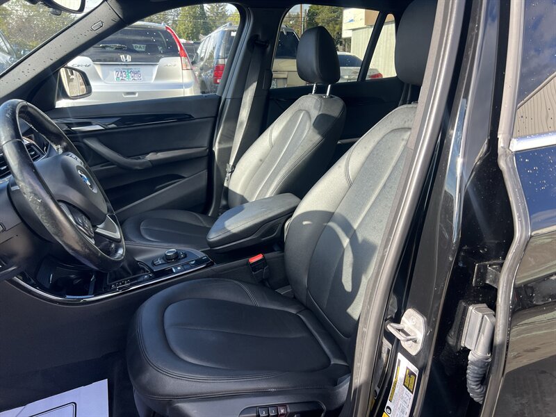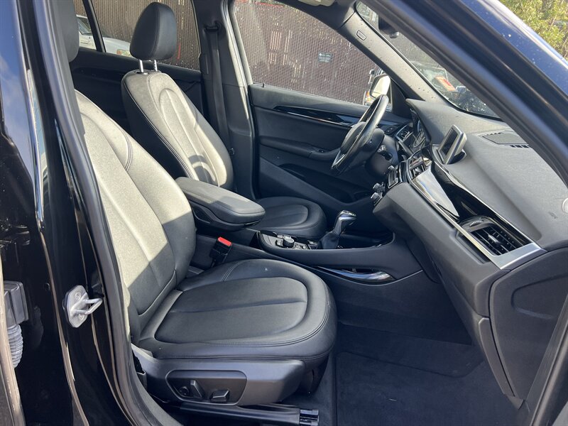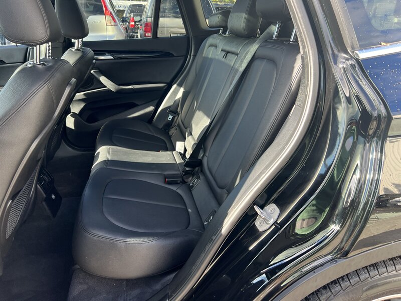 2016 BMW X1 xDrive28i with a 2.0L turbocharged I4 producing 228 hp and 258 lb-ft, paired with BMW’s xDrive all-wheel drive and an 8-speed automatic transmission. Finished in Black Sapphire Metallic with a Black interior, this vehicle has under 87,000 miles (averaging less than 8,000 miles per year), returns about 22 MPG city / 32 MPG highway, and is in excellent overall condition. Factory equipment includes iDrive infotainment with center display and rotary controller, Bluetooth/USB/AUX audio, HD/SiriusXM-capable radio, dual-zone automatic climate control, power front seats, 60/40 split-folding rear seats, alloy wheels, roof rails, and standard safety systems (ABS, traction/stability control, front/side airbags).