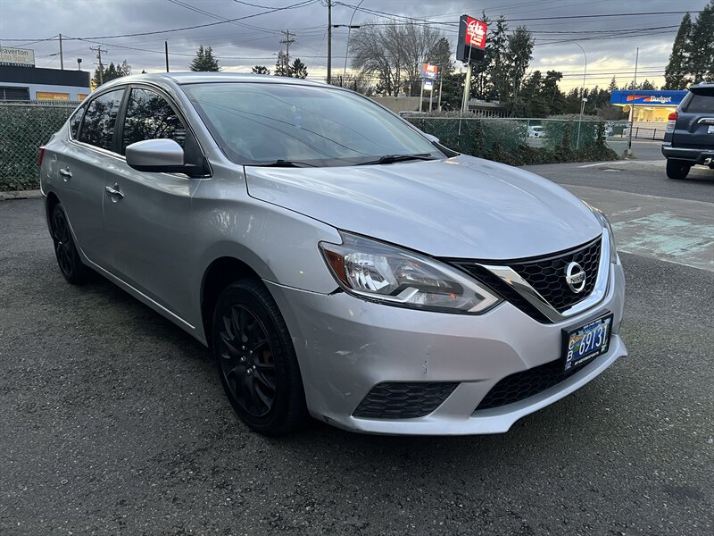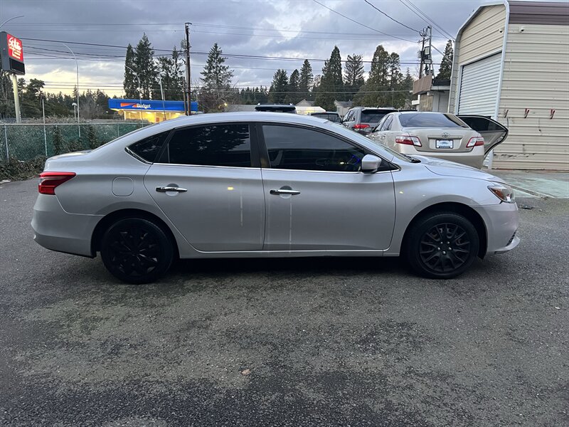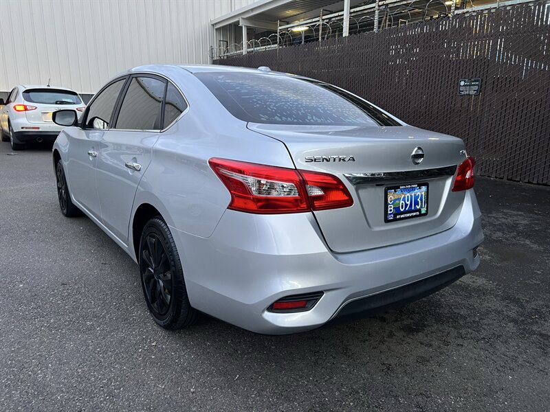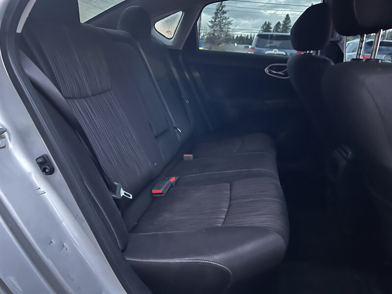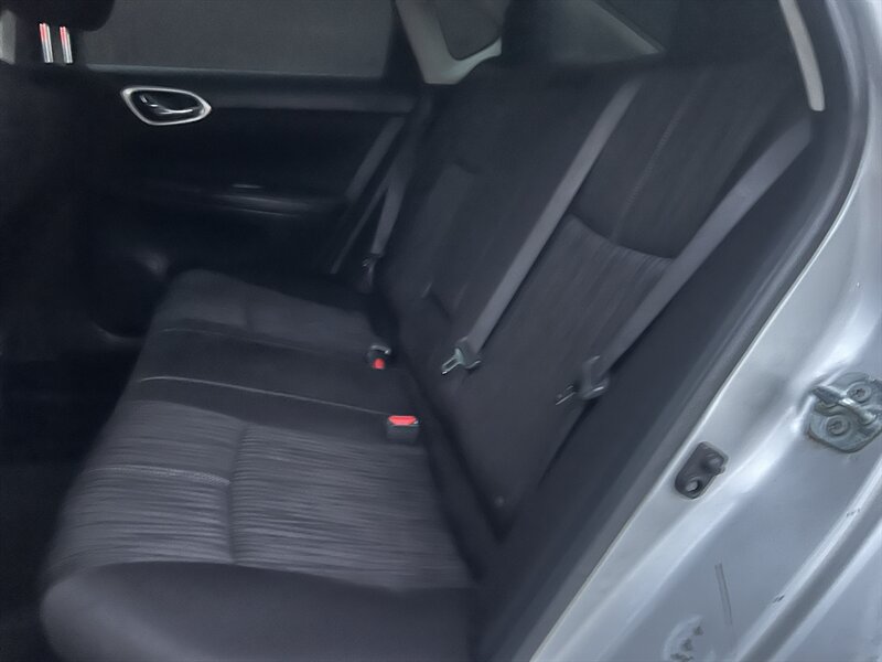2017 Nissan Sentra S in Brilliant Silver with a Black cloth interior, powered by a 1.8L I4 (130 hp / 128 lb-ft), EPA-rated at 27 MPG city and 35 MPG highway. Factory equipment includes air conditioning, cloth seating, 60/40-split rear seat, power windows and door locks with remote keyless entry, cruise control, tilt steering, an AM/FM/CD audio system with Bluetooth hands-free and streaming audio, a rearview camera, 16-inch steel wheels, halogen headlights, and full safety systems including ABS, traction control/vehicle stability control, front and side-impact airbags with side curtain airbags, and a tire pressure monitoring system. This vehicle is in excellent overall condition.