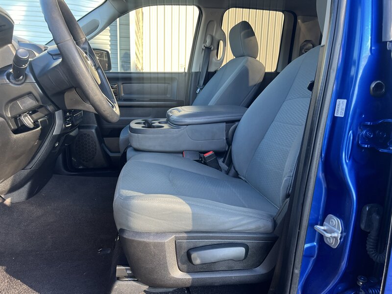 2019 RAM 1500 Classic Tradesman 4x4 in True Blue Pearl Coat with Diesel Gray/Black interior, powered by a 3.6L FlexFuel V6 producing 305 hp and 269 lb-ft. Vehicle is in excellent overall condition. Factory-standard equipment includes four-wheel drive, a full complement of airbags (front, side and curtain), ABS, electronic stability and traction control, tire pressure monitoring and a rearview camera; remote keyless entry, power windows and door locks, cruise control and manual air conditioning; AM/FM audio with Bluetooth and auxiliary/USB inputs; durable cloth seating in Diesel Gray/Black, heavy-duty steel wheels and practical pickup bed features for work use.